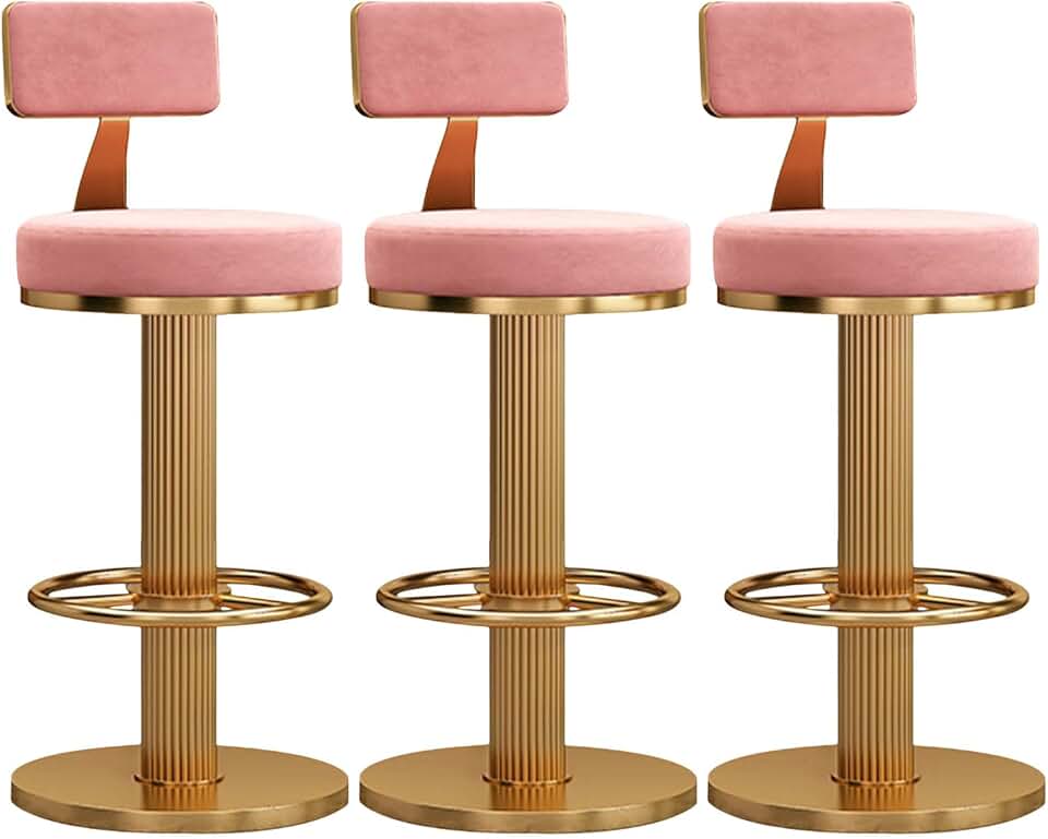 Modern Barstools Set of 3 Swivel Velvet Bar Stool Counter Height Bar Chairs Adjustable Height for Home Bar Kitchen Island Chair,F,Gold