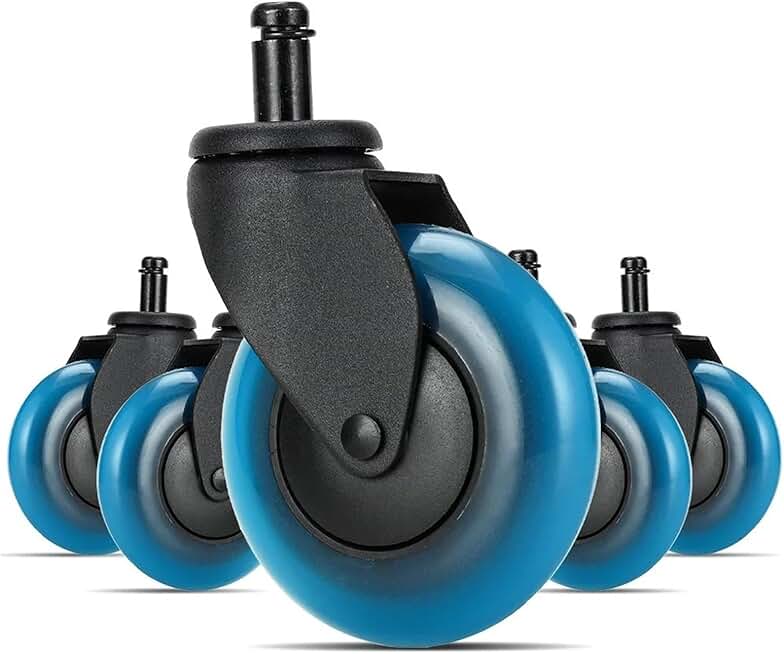 5Pcs Blue Polyurethane Office Chair Caster Wheels 3 Inches Swivel Rubber Soft Furniture Wheels Safe Rollers for Furniture