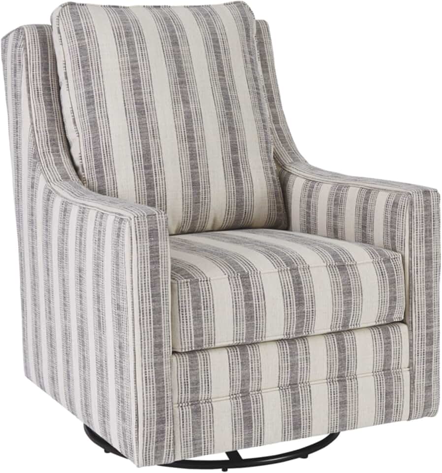 Signature Design by Ashley Kambria Striped Upholstered Swivel Accent Glider Chair, Ivory & Black