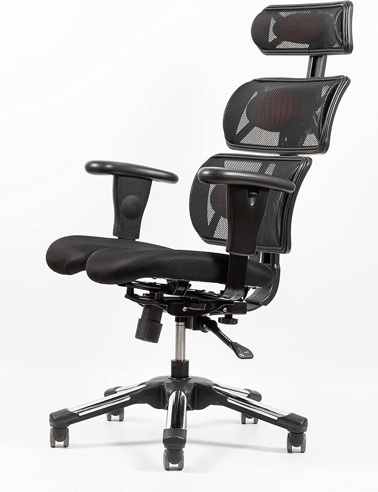 Doctor Fresh – Task Chair with Spinal Traction Effect and Dual Split Seat by Hara Chair, Dynamic Seat, Metal Base, Black Breathable Mesh, High Back Chair, Adjustable Headrest