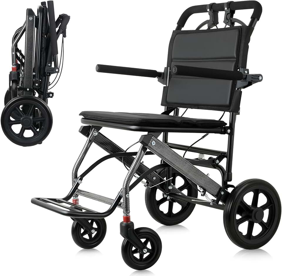 Lightweight Folding Wheelchair, Transport Wheelchairs for Traveling, Folding Transport Wheelchairs for Adults and Seniors Support 220lbs, Lightweight Aluminum Wheelchair for Elderly