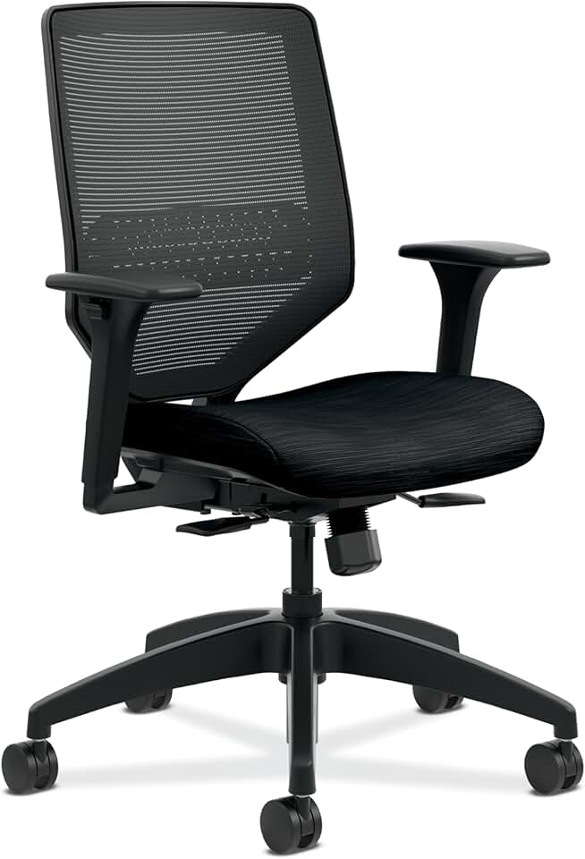 HON Solve Ergonomic Office Chair Mesh Back Support - Adjustable Lumbar Desk Chair with Wheels - Synchro-Tilt Recline, Height & Width Adjustable Arms, 360 Swivel Chair, Home Office Desk Chair - Black