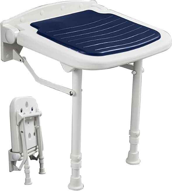 Shower Seat Bench, Wall-Mounted Folding Stool Chair Fold Down Shower Seat with Legs for Seniors Small Shower Space for Inside Shower,Pregnants-Maximum Load 190 Kg(Color:Blue)