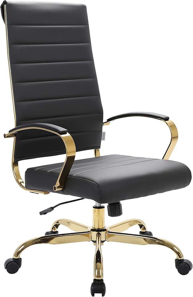LeisureMod Benmar Modern High-Back Adjustable Swivel Leather Office Chair with Gold Frame (Black)