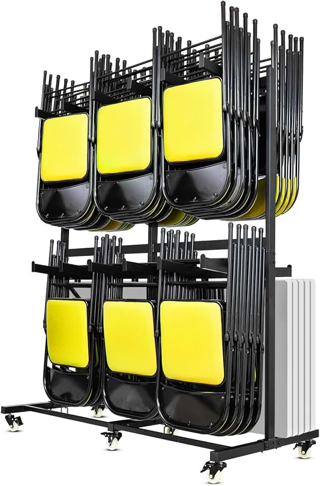 Folding Chair Storage Rack Folding Chair Cart Thickened Two Tier Heavy Duty Folding Table Folding Chair Racks for Storage with Locking Rubber Wheels can Withstand 800LBS Heavy