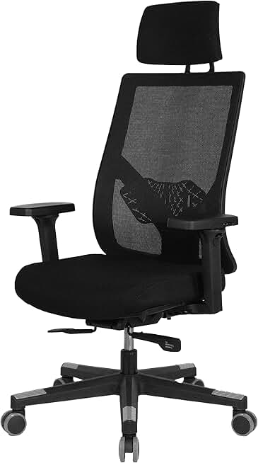 ErgoMax, w/Headrest & Armrests Ergonomic Adjustable, Breathable Mesh Fabric, Home Office Chair, 53 in. Max Height, Black