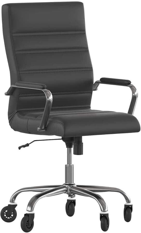 Flash Furniture Whitney High Back Black LeatherSoft Executive Swivel Office Chair with Chrome Frame, Arms, and Transparent Roller Wheels