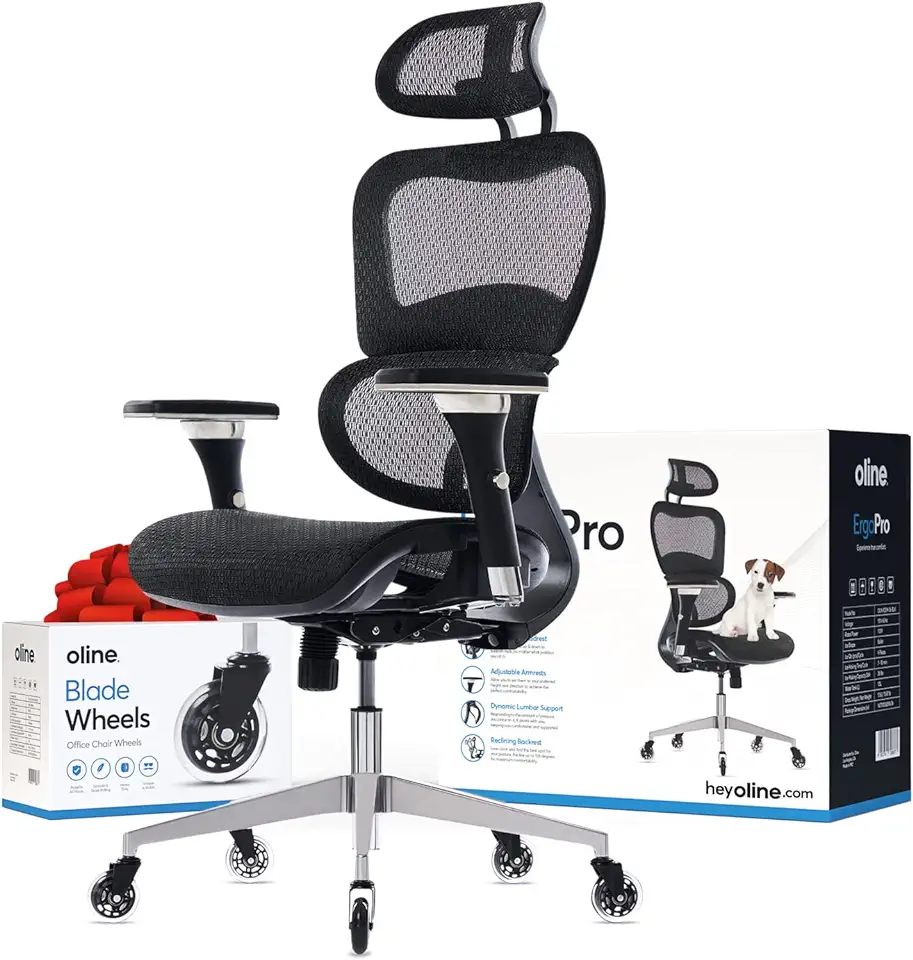 Oline ErgoPro Ergonomic Office Chair, Rolling Desk Chair with 4D Adjustable Armrest, 3D Lumbar Support, Blade Wheels, Mesh Computer Gaming Executive Swivel Chairs Chair (Black)
