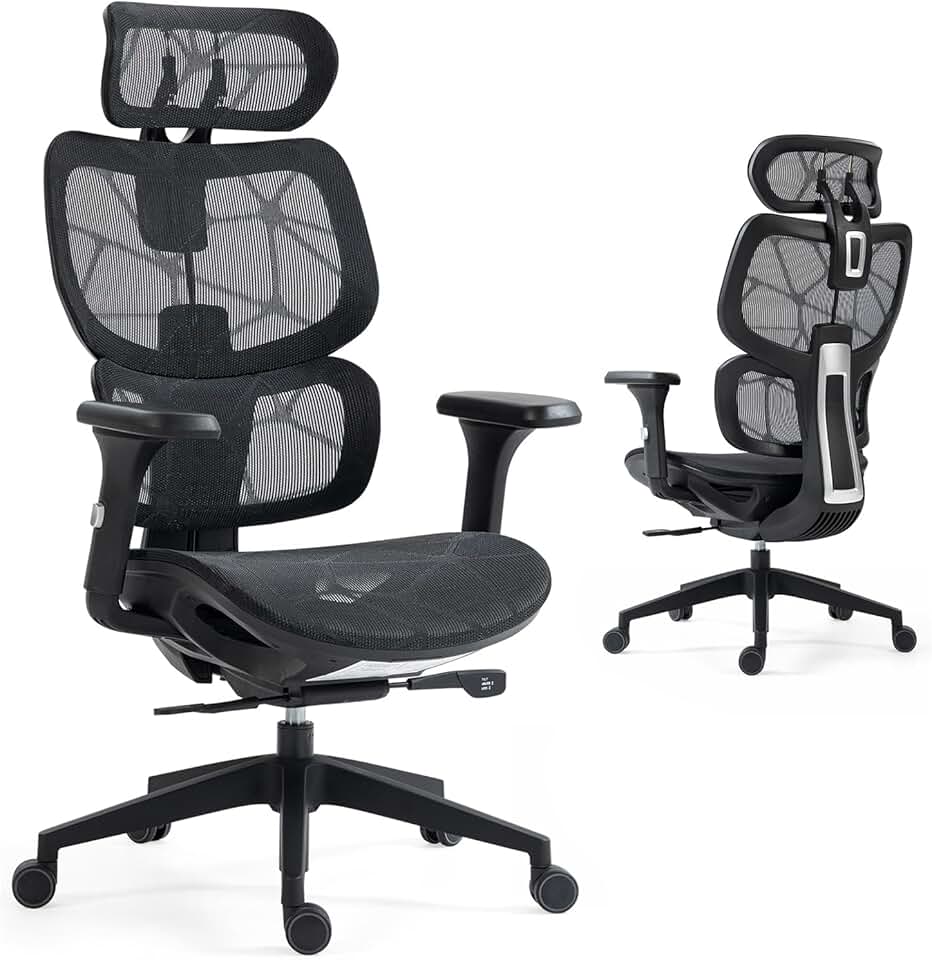 KFO High Back Mesh Ergonomic Office Chair, Home Office Desk Chair with Adjustable Headrest and Arms, Lumbar Support, Swivel Computer Task Chair, Black