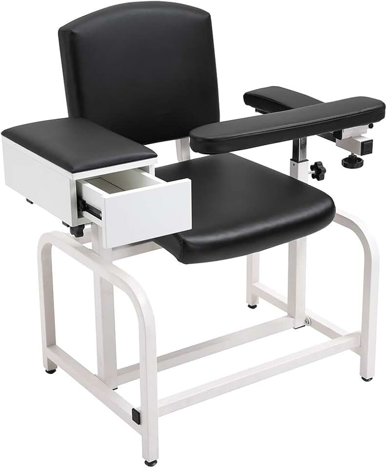 Lab Blood Drawing Chair with Padded Flip Arm and Drawer (Black)
