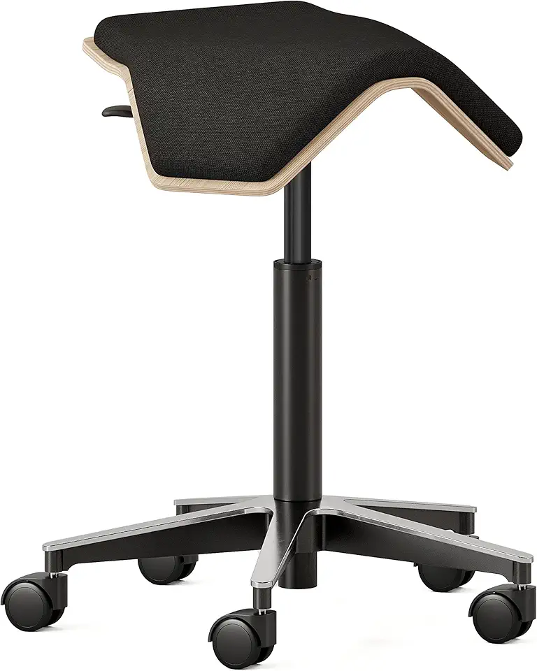 Branch Saddle Chair ILOA Plus - Ergonomic Rolling Stool for Healthy Posture and Sustainable Style - Height Adjustable Stool with Birch Plywood Frame and Recycled Polyester Seat Fabric - Black