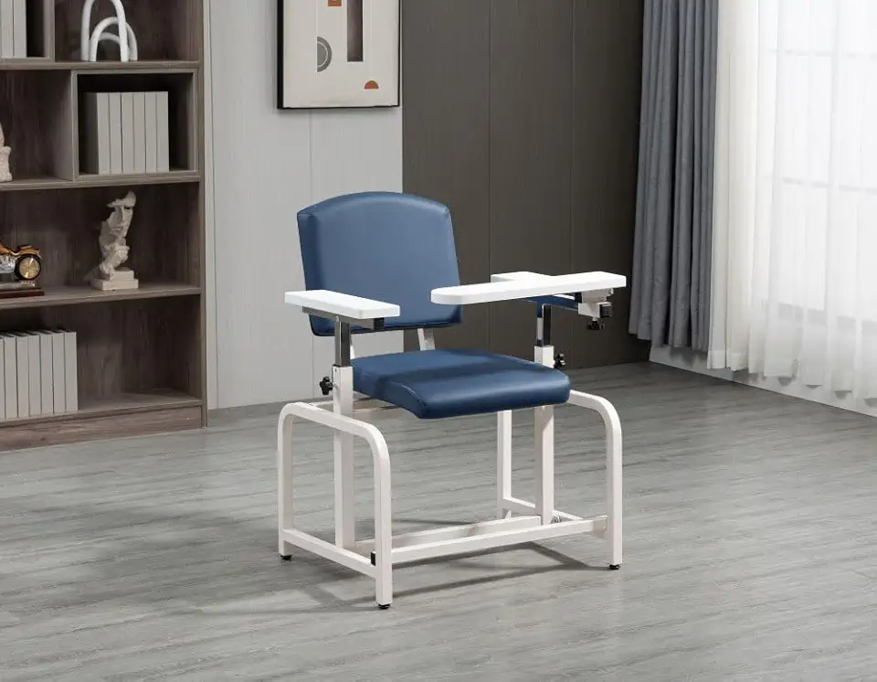 Lab Blood Drawing Chair with Padded Flip Arm and Drawer (Blue)