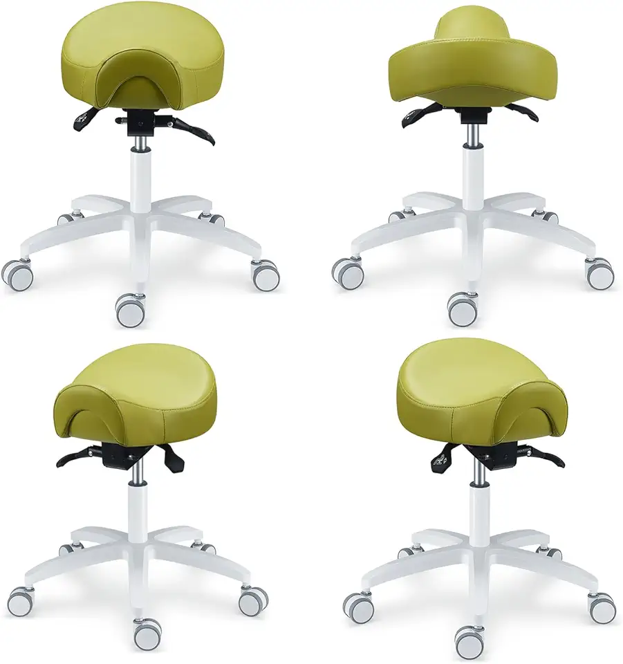PLST-075 Green Color Microfiber Leather Ergonomic Height Adjustable Saddle Stool Rolling Swivel Chair for Lab,Salon,Massage,Office