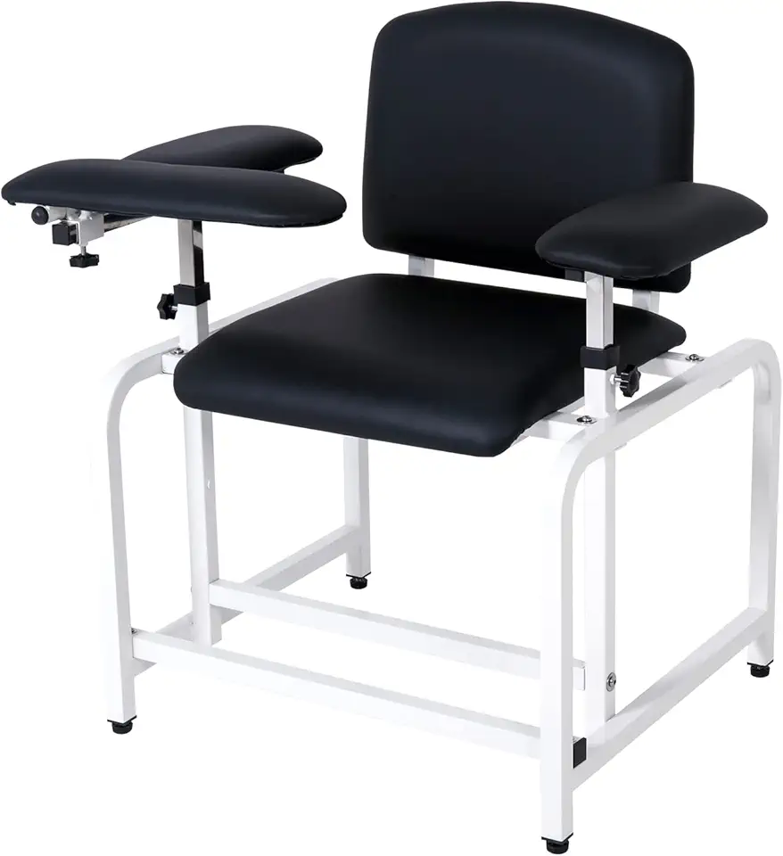Helsevesen Comfortable Padded Blood Drawing Chair, Lab Phlebotomy Chair with Adjustable Armrest (Black)