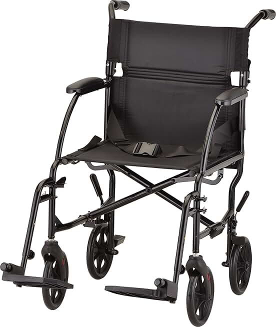 NOVA Medical Products Ultra Lightweight Transport Chair, Weighs Only 18.75 lb, Compact for Travel, Black