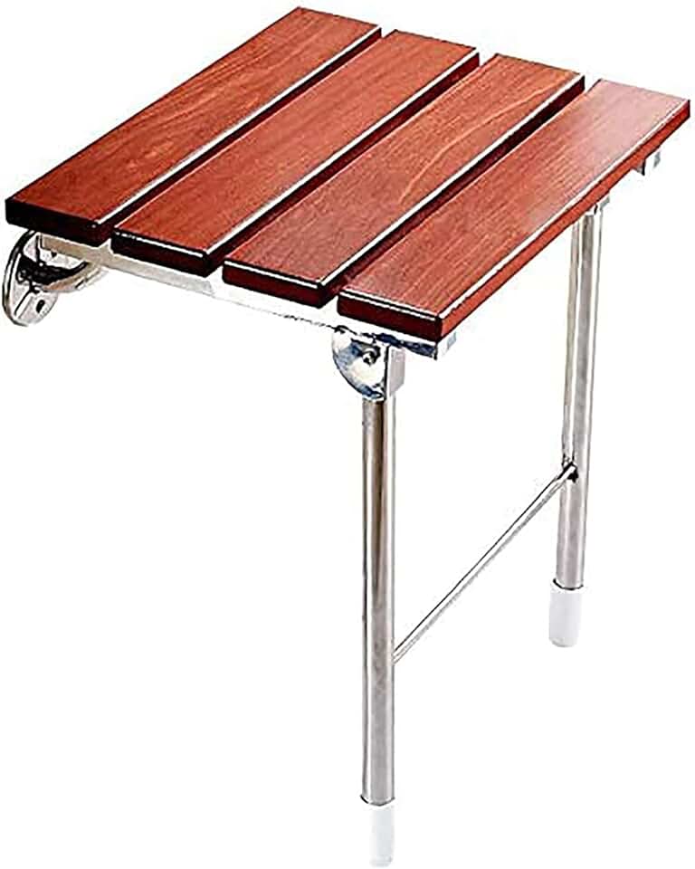 Wood Fold Down Shower Seat, Wall Mounted Shower Chair, with Support Legs, Load Capacity 350lbs, for Inside Shower Space-Saving Entryway Solid Wood Shoe Changing
