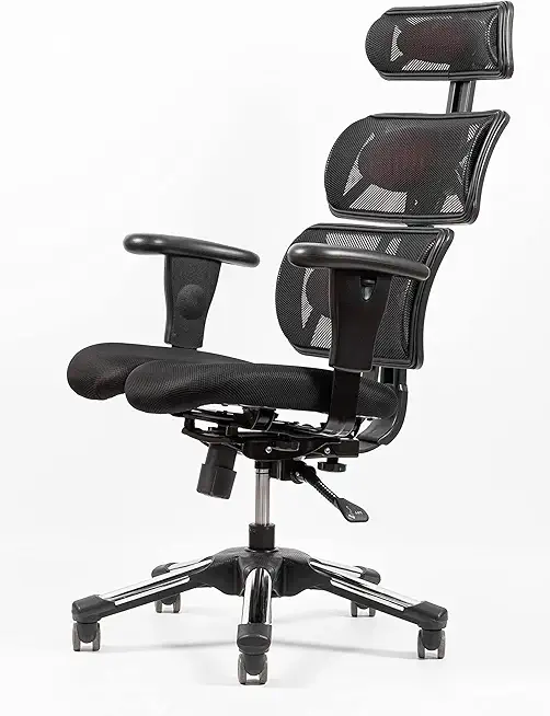 Doctor Fresh – Task Chair with Spinal Traction Effect and Dual Split Seat by Hara Chair, Dynamic Seat, Metal Base, Black Breathable Mesh, High Back Chair, Adjustable Headrest