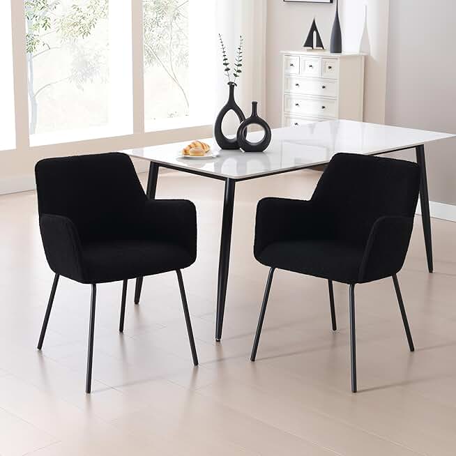 ONEVOG Black Kitchen & Dining Room Chairs Set of 2, Upholstered Small Space Dining Chair Set with Arms and Black Metal Legs, Fabric Kitchen Chairs with Curved Back Support