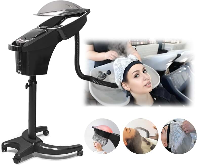 Elitzia Hair Steamer Micro Mist Aroma Steam Mister Hooded 4 Color Light Hair Care Professional for Natural Black Hair Use Shampoo Bowl Hair Wash Recline Chair Black Color with UV Protect Coat ET19290