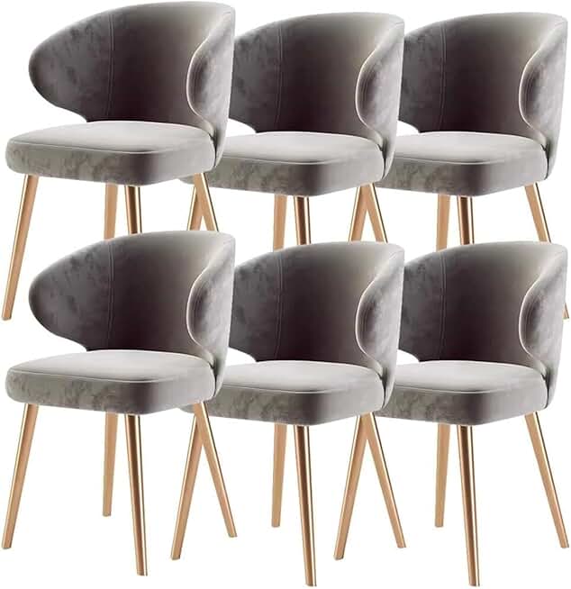 Modern Dining Chairs Set of 6 Kitchen Lounge Chair with Metal Legs Velvet Seat and Backrests for Living Room Bedroom Condominium(Gray)