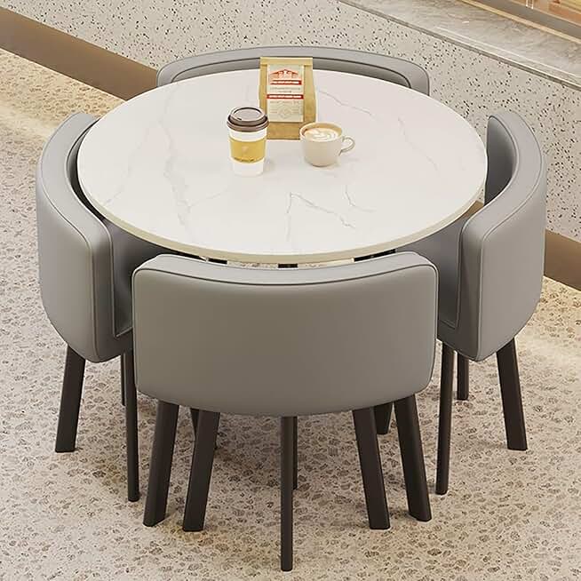 Chair Set Reception Table Sales Office Shops Meetings Small Round Tables, Office Business Hotel Lobby Dining Table Set, Suitable for Lounge, Living Room, Kitchen(Gray)