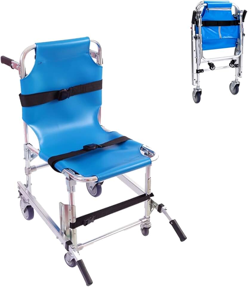4 Wheel Stair Chair, Transfer Stair Chair Lift Assist Devices, Aluminum Light Weight Ambulance Firefighter Medical Foldable Lift, for Elderly, Load Capacity 159kg with Quick Release Buckles