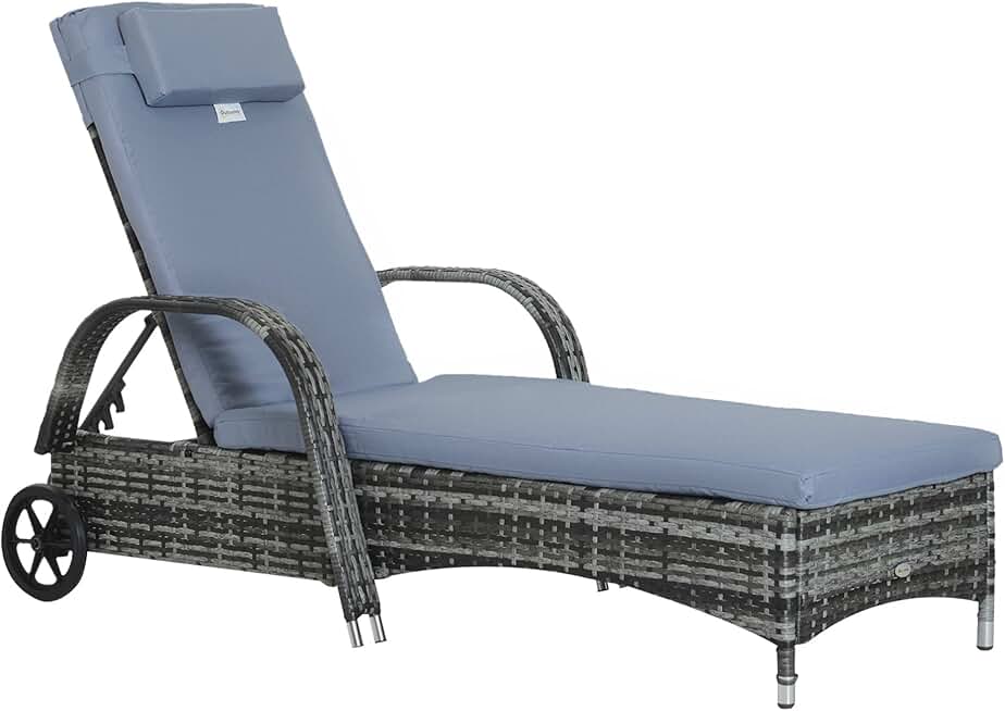 Chaise Lounge Pool Chair, Outdoor PE Rattan Cushioned Patio Sun Lounger w/ 5-Level Adjustable Backrest & Wheels for Easy Movement, Wicker, Mixed Gray