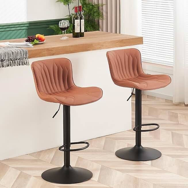 Bar Stools Set of 2, Counter Height Stools for Kitchen, 24 inch Swivel Barstools, Adjustable Island Chairs with Back, Tan
