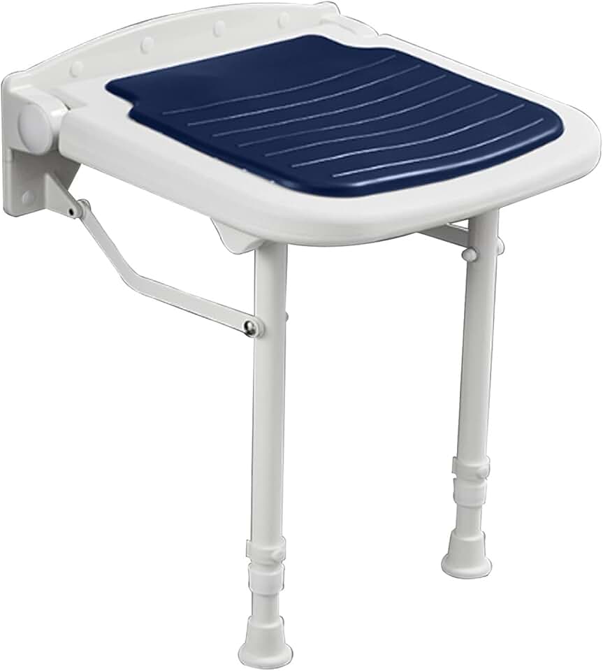 Wall Mounted Shower Seat with Legs, Adjustable Bath Chair Shower Chair for Seniors Shower Seats and Benches Foldable for Bathtubs for Elderly, Senior, Handicap & Disabled(Color:Blue)