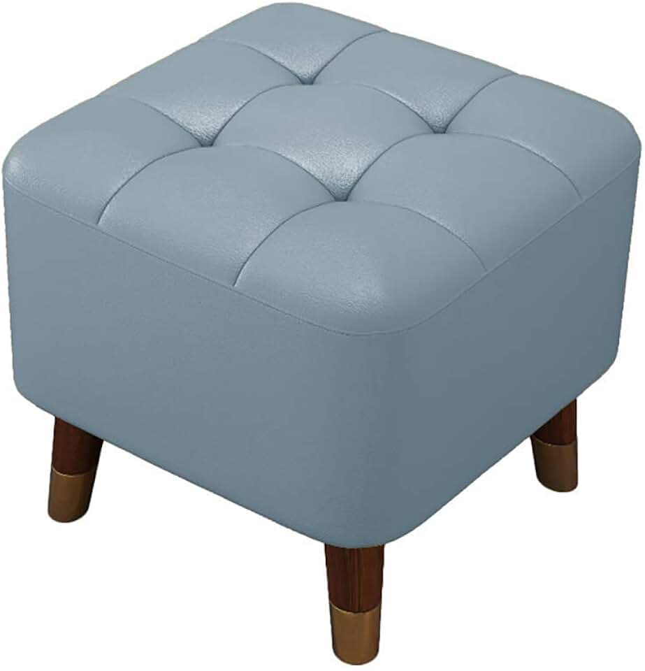 Footrest Small Ottoman Stool,16'' Pu Leather Foot Stool - Small Footstool Under Desk,Modern Rectangular Ottoman Footstool Chair Seat - for Room,Bedroom,Coffee Table/Blue