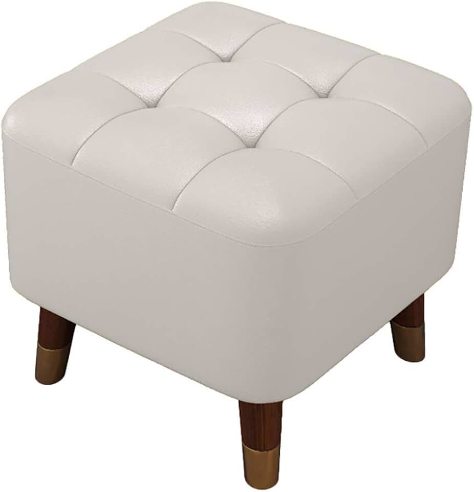 Footrest Small Ottoman Stool,16'' Pu Leather Foot Stool - Small Footstool Under Desk,Modern Rectangular Ottoman Footstool Chair Seat - for Room,Bedroom,Coffee Table/White