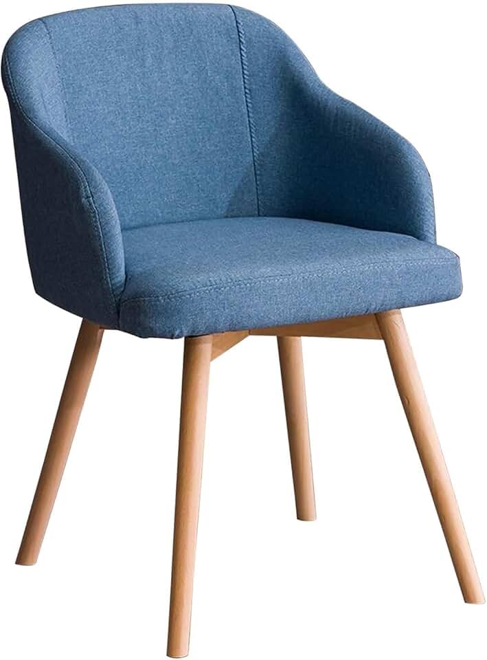 Meal Chairs Linen Farmhouse Upholstered Kitchen Chairs with Backrest and Wood Legs Armchairs for Home Kitchen Bedroom Living Room Comfortable Durable Anti-Skid Multipurpose Chair/Light Blue/On