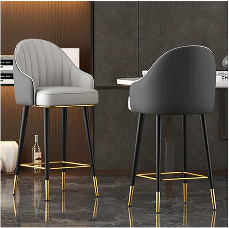 Set of 2 Faux Modern Upholstered Bar Stool, with Back, Leather Dining Room Chairs, Barstools, Minimalist Light Luxury Bar Chair Swivel Backrest Armrest High Stool 80cm Desktop, non-rotating