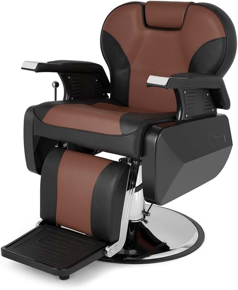 PVC Leather Case ABS Armrest Shell 300lbs Load-Bearing Disc with Footrest Can Be Put Down Barber Chair(Black)