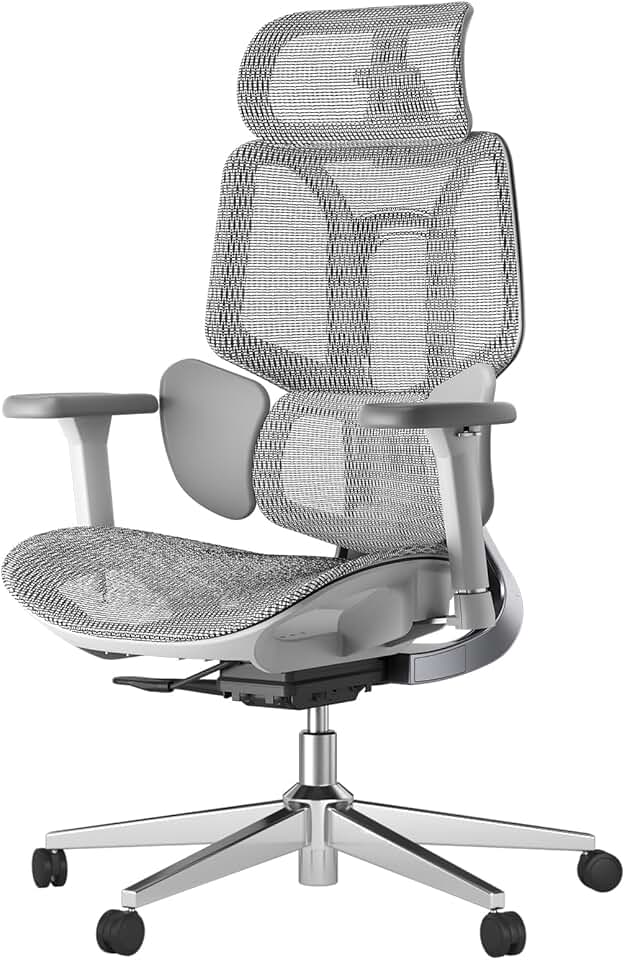 Hbada E3 Air Ergonomic Office Chair, Big and Tall Office Chair - with 3-Zone Dynamic Lumbar Support, 3D Adjustable Headrest, 3D Adjustable Armrests, Swivel Computer Chair, Grey(No Footrest)
