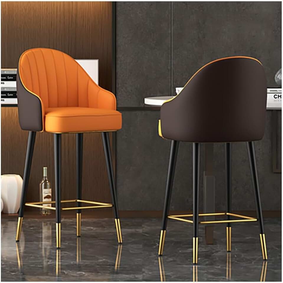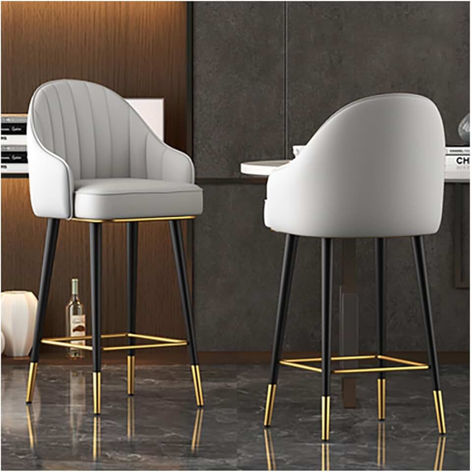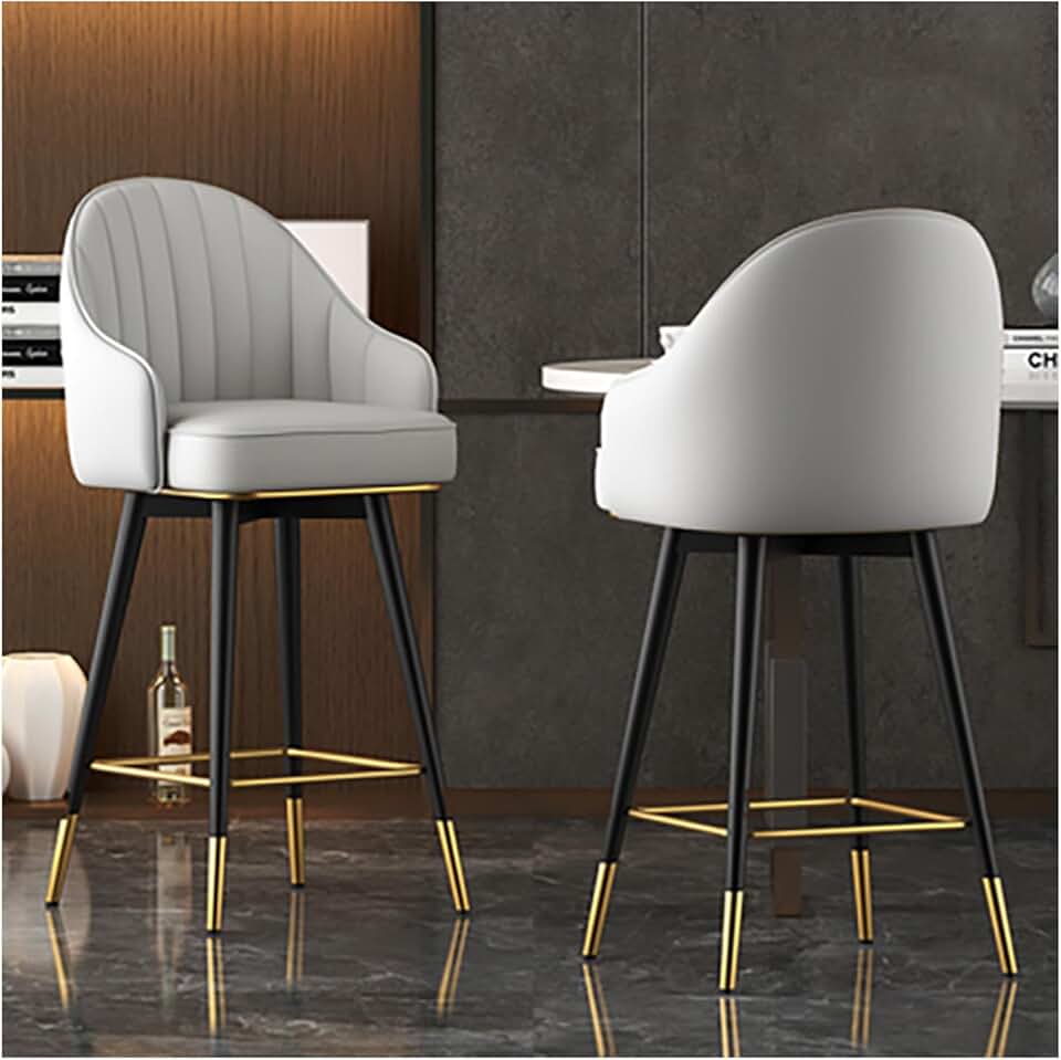 Set of 2 Faux Modern Upholstered Bar Stool, with Back, Leather Dining Room Chairs, Barstools, Minimalist Light Luxury Bar Chair Swivel Backrest Armrest High Stool 80cm Desktop