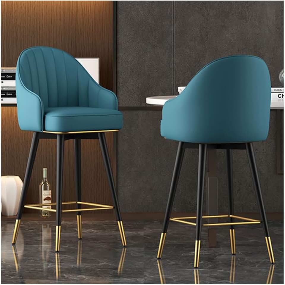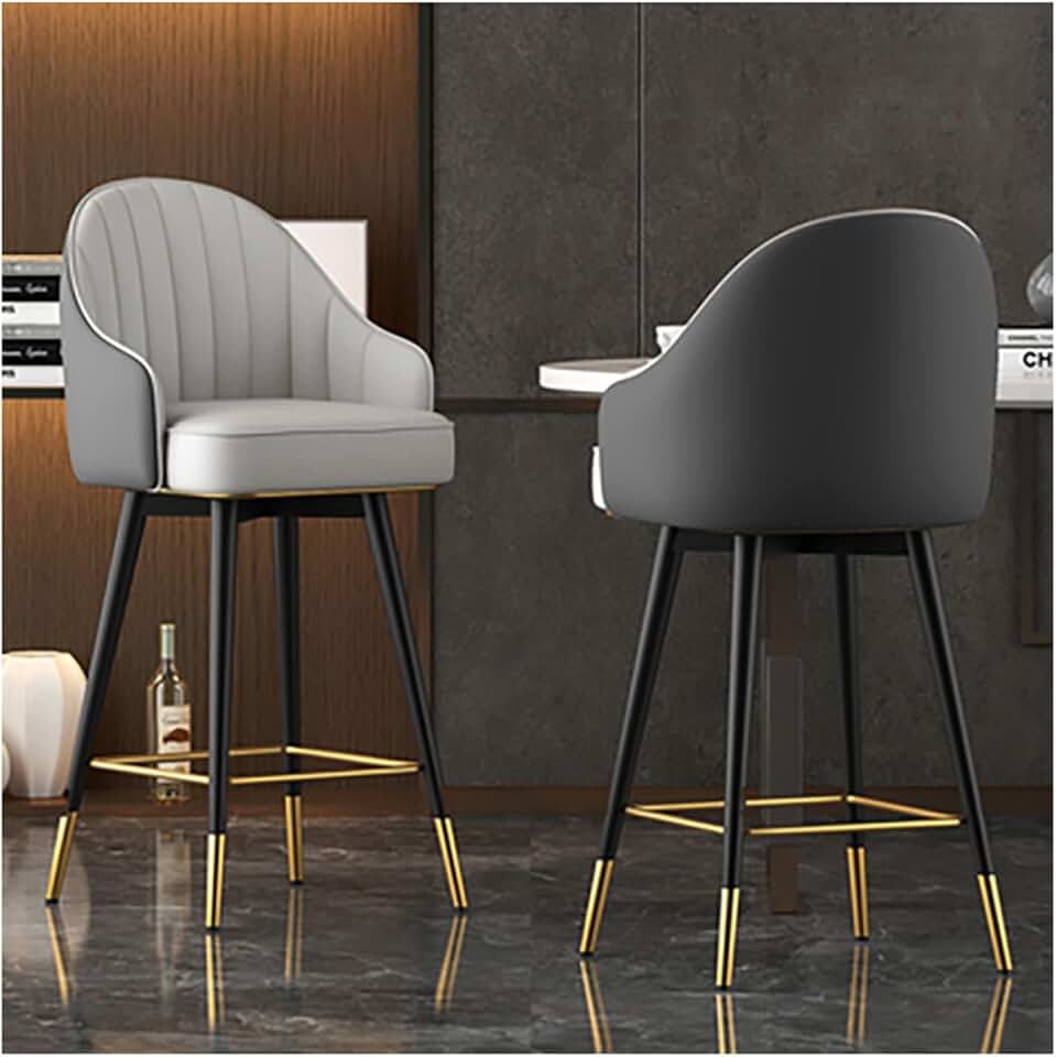 Set of 2 Faux Modern Upholstered Bar Stool, with Back, Leather Dining Room Chairs, Barstools, Minimalist Light Luxury Bar Chair Swivel Backrest Armrest High Stool 80cm Desktop