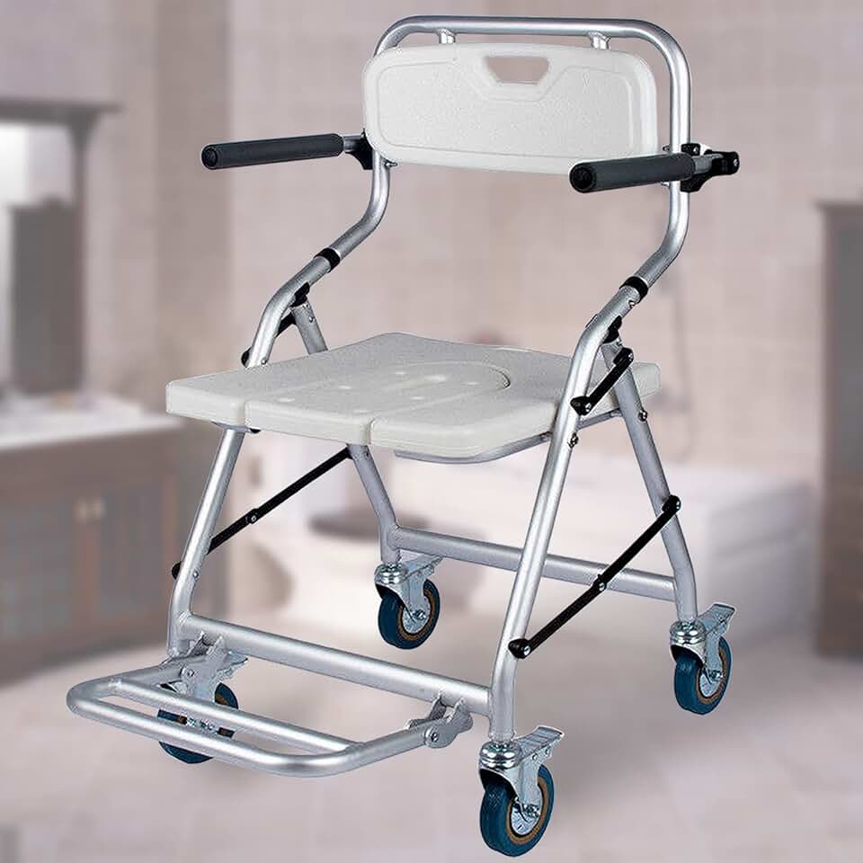 Shower Stool with Wheels Elderly Shower Chair Bath Stool with Backrest and Armrests Folding Shower Seat for Elderly and Disabled