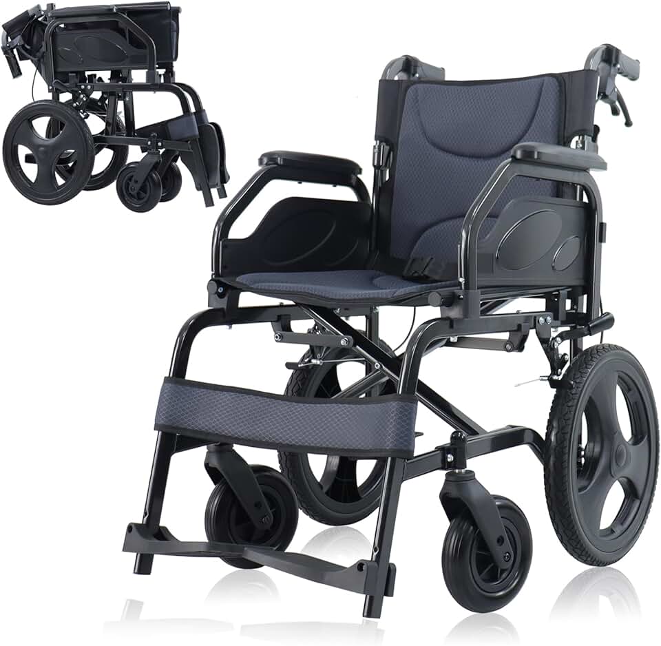 Lightweight Wheelchair Aluminum Alloy with Handbrakes, Silla de Ruedas for Adults, Durable Square Tube and Flip Up Armrest