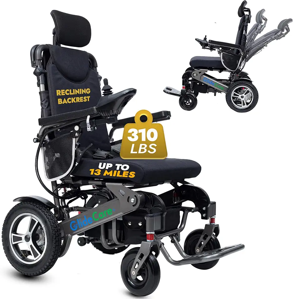 Glide Care G-6R Reclining Backrest Electric Wheelchair for Adults, Foldable, Airline Approved, Motorized Power Chair for Travel and Outdoor Use, Up to 13 Miles Range, Silver Frame