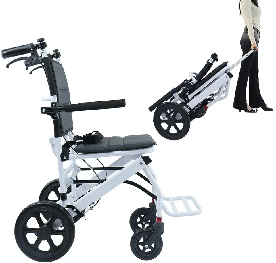 Ultralight Transport Wheelchair, 11 in Rear Wheel,Folding Portable Boarding Travelling Wheelchair with Hand Brake, Wheelchairs for Adults,Folding Wheelchairs,Trolleys for Elderly Aircraft Travel