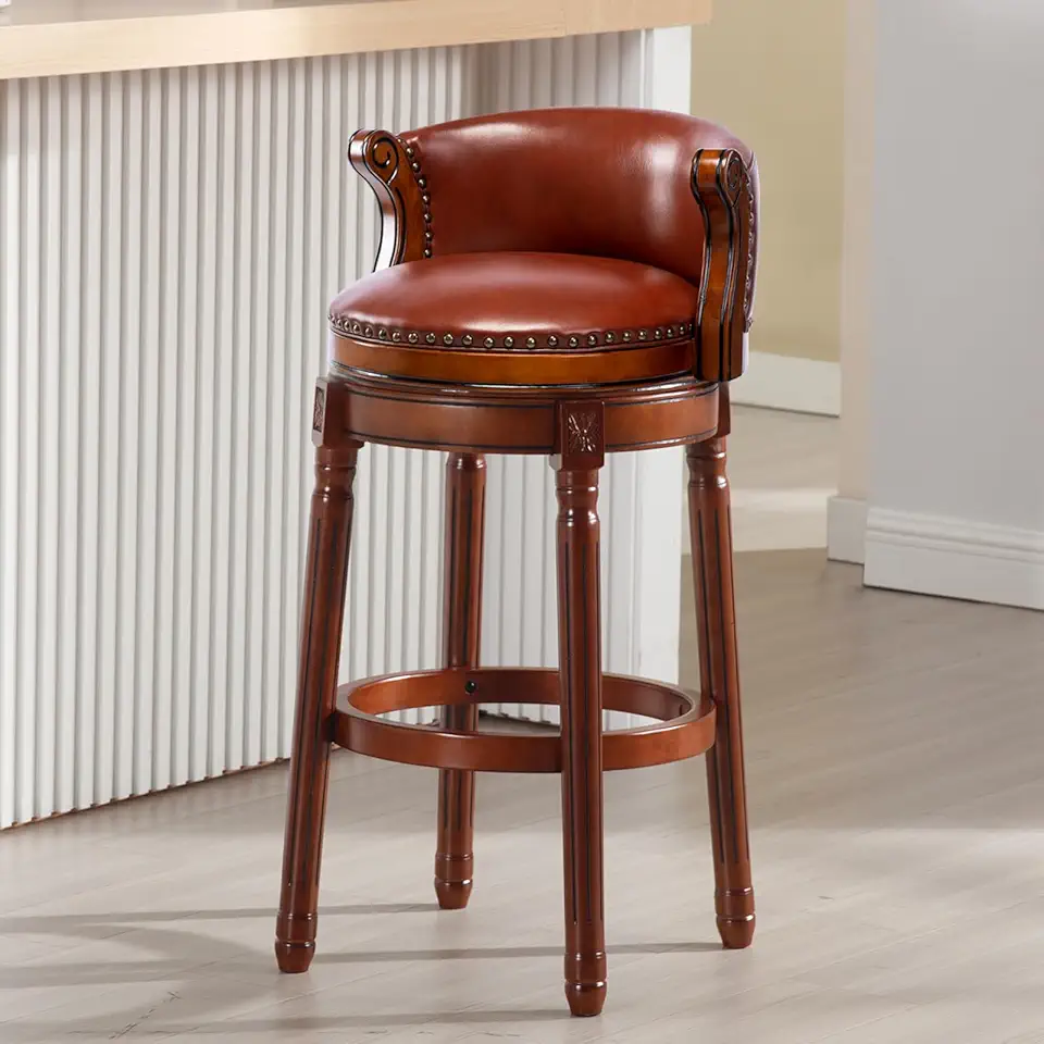 30'' Bar Stool,Full-Grain Genuine Leather Bar Height Swivel Barstools with Brown Backrest and Wooden Legs,Mid Century Modern Bar Chairs for Kitchen/Dining Room/Bar