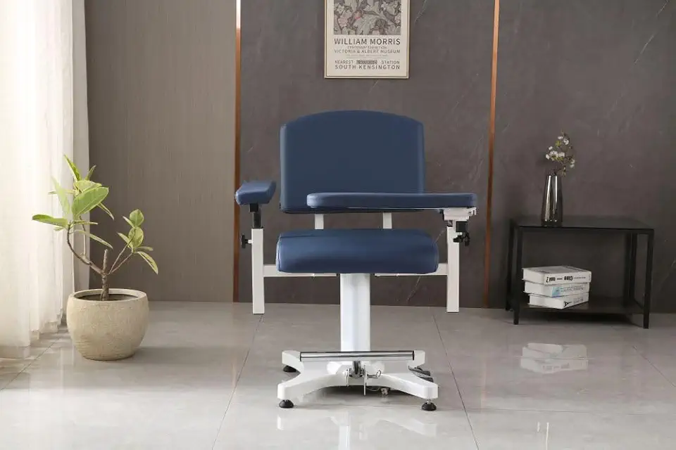 Medycare Electrcic Height Adjustable Phlebotomy Chair for Blood Drawing lab Draw Heavy Loading (Blue)
