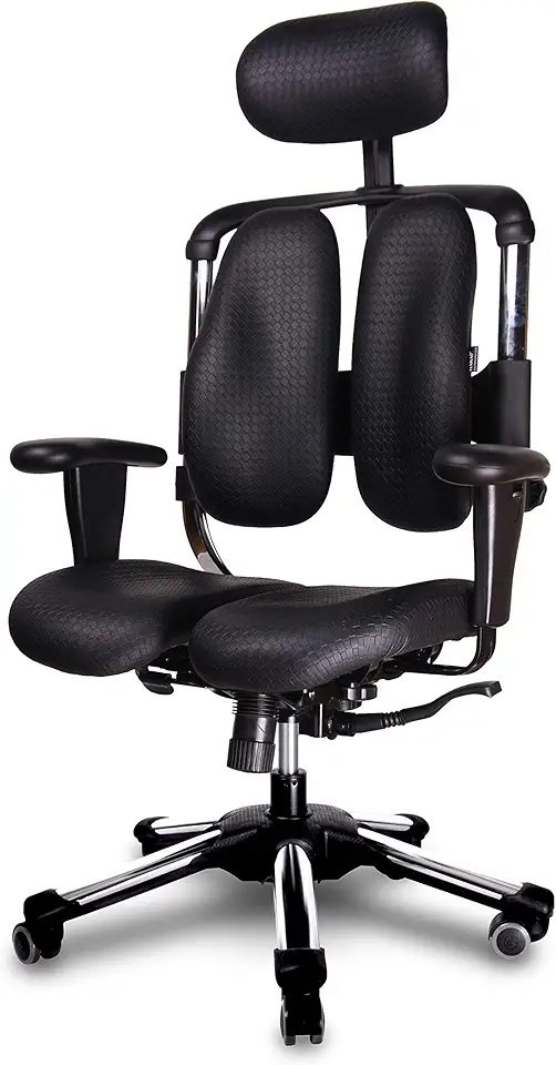 Nietzsche UD, Artificial Leather – Computer Chair with Split Seat and Dual Backrest by Hara Chair, Dynamic Seat, Metal Base, Black Faux Leather, Adjustable Headrest and Backrest