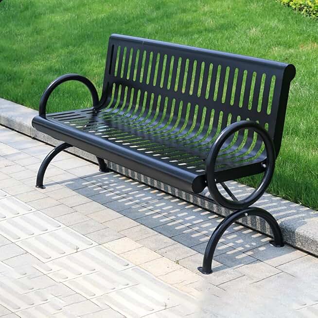 Outdoor Park Bench, Metal Wrought Iron, Long Double Chair,Shopping mall Square Residential Sales Department Leisure seat Garden Chair Metal Wrought Long Chair (L 59.1 Black backrest Chair)