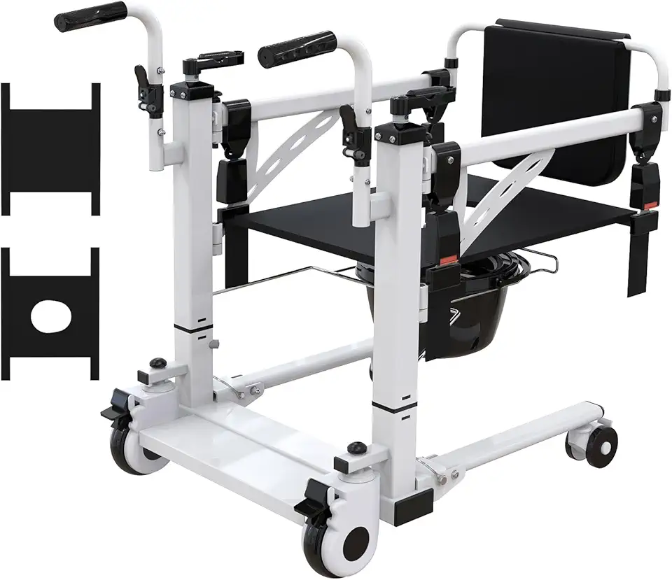 Patient Lift Transfer Chair, Hoyer Lifts for Home Use, Patient Lift for Home,Bathroom Wheelchair with 180° Split Seat and Potty, Portable Elderly Lift Bedside Commode Chair