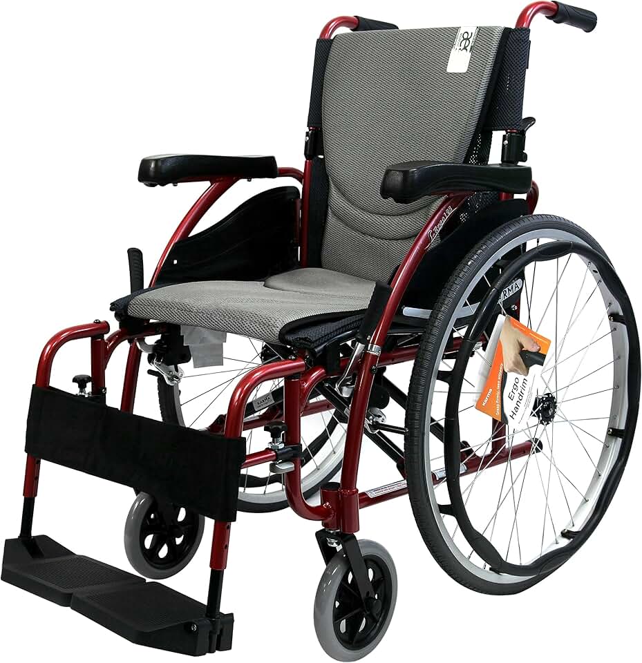 Karman Ergonomic Wheelchair with Quick Release Axles in 16" Seat, Rose Red Frame
