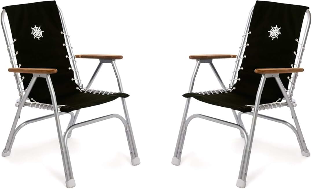 FORMA MARINE Folding Aluminum High Back Boat Chair Black with Bamboo Armrest Set of 2 Chairs, 2ECO150BL
