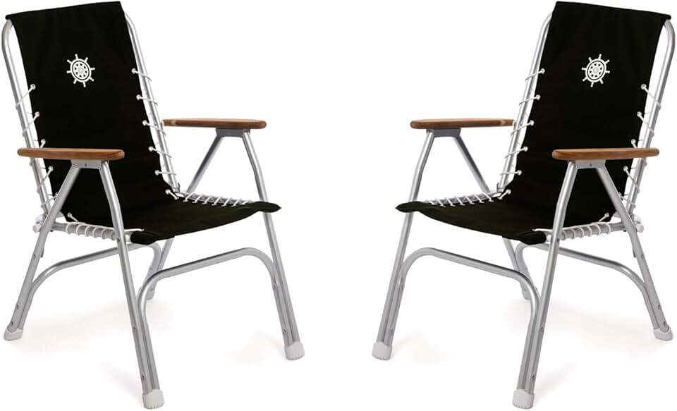 FORMA MARINE Folding Aluminum High Back Boat Chair Black with Bamboo Armrest Set of 2 Chairs, 2ECO150BL