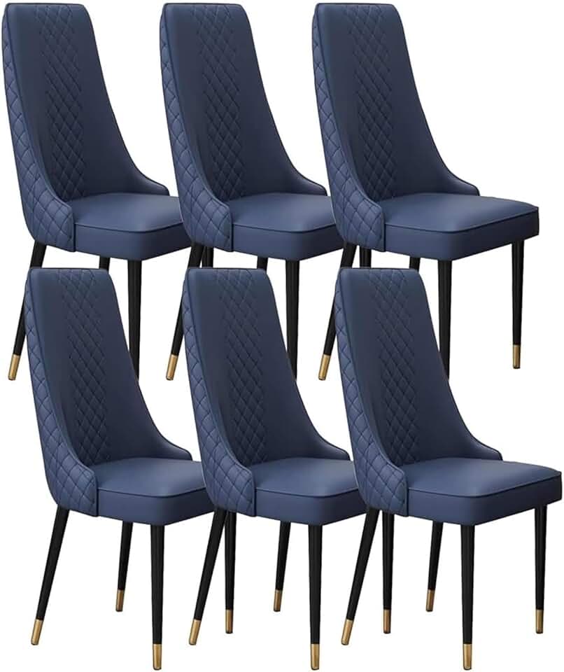 Kitchen Kitchen Dining Chairs Set of 6 Micro Fiber Leather High Back Padded Soft Seat Sturdy Carbon Steel Metal Legs (Color : Blue)